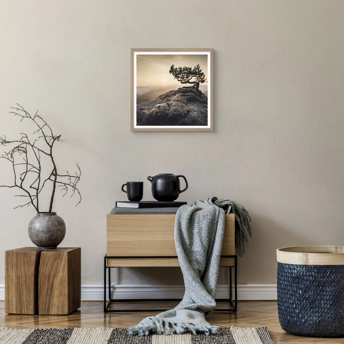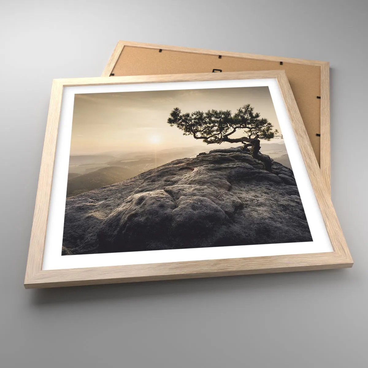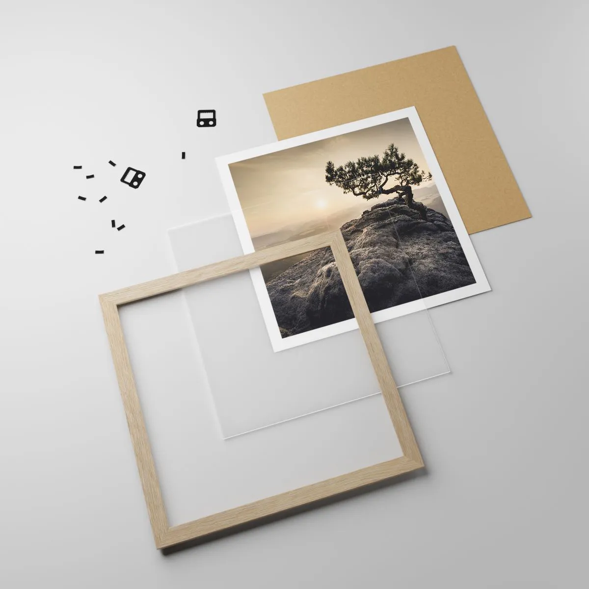 Poster în ramă de stejar deschis - Viața învinge întotdeauna - 40x40 cm