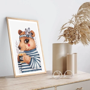 Poster în ramă de stejar deschis - Ursoaică dulce - 40x40 cm