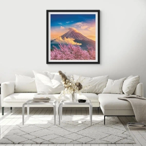 Poster în ramă neagră - Muntele Fuji înconjurat de flori de cireș la apus - 50x70cm - Sfințenia japoneză - Decorațiune modernă pentru perete pentru living și dormitor ARTTOR