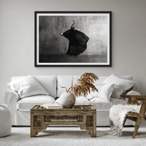 Poster în ramă neagră - O fotografie alb-negru a unui dansator în mișcare dinamică pe un perete brut. - 50x70cm - Un pas pasional - Decorațiune modernă pentru perete pentru living și dormitor ARTTOR