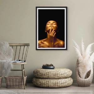 Poster în ramă neagră - O figură aurie pe fundal negru într-o poză elegantă - 50x70cm - Ca mătasea aurie - Decorațiune modernă pentru perete pentru living și dormitor ARTTOR