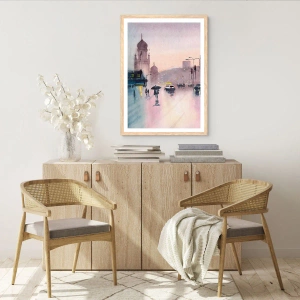 Poster în ramă de stejar deschis - Într-o ceață ploioasă - 40x50 cm