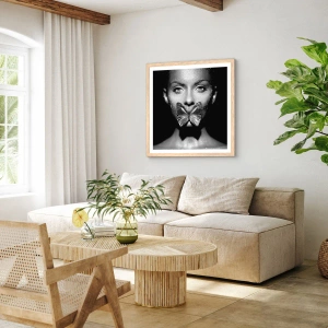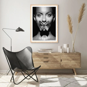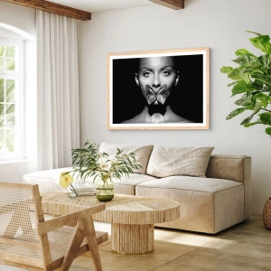 Poster în ramă de stejar deschis - Sărut de fluture - 100x70 cm