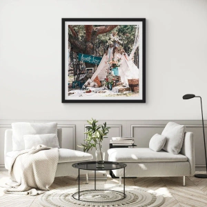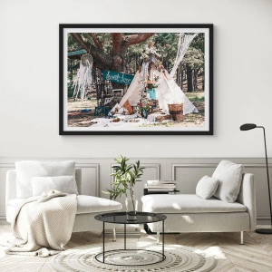 Vă prezentăm posterul „Make love…”, care surprinde în mod unic esența stilului boho. Imaginea prezintă detalii atent concepute, cum ar fi un cort decorat cu flori, elemente naturale și inscripția „Sweet Love”, care împreună creează o compoziție armonioasă. Este o propunere plină de romantism, căldură și subtilitate.