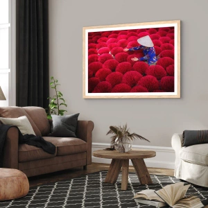 Poster în ramă de stejar deschis - Într-un câmp de orez - 50x70 cm