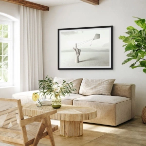 Poster în ramă neagră - O mână de lemn cu un zmeu pe un fundal luminos - 50x70cm - Încercare de forță - Decorațiune modernă pentru perete pentru living și dormitor ARTTOR