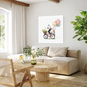 • Pentru copii, Panda pe bicicletă, Abstracție, Pentru copii, Pastel, Animale, Pentru camera copiilor alb, Vertical