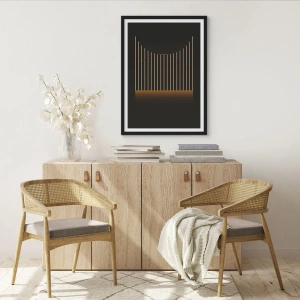 - Acest poster prezintă o compoziție geometrică de linii verticale pe un fundal închis. Designul său minimalist și accentele aurii aduc eleganță și armonie oricărui interior. Perfect pentru spațiile moderne unde stilul subtil și rafinat este esențial.