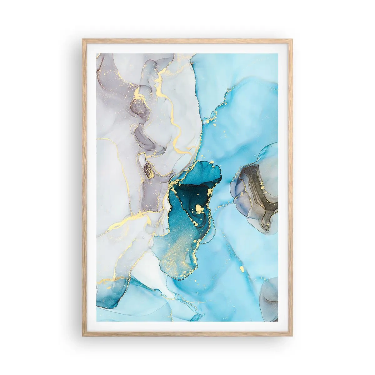 Poster în ramă de stejar deschis - Un studiu al întâlnirii dintre gri și turcoaz - 70x100 cm