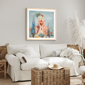 Poster în ramă de stejar deschis - Femeia floare - 70x50 cm