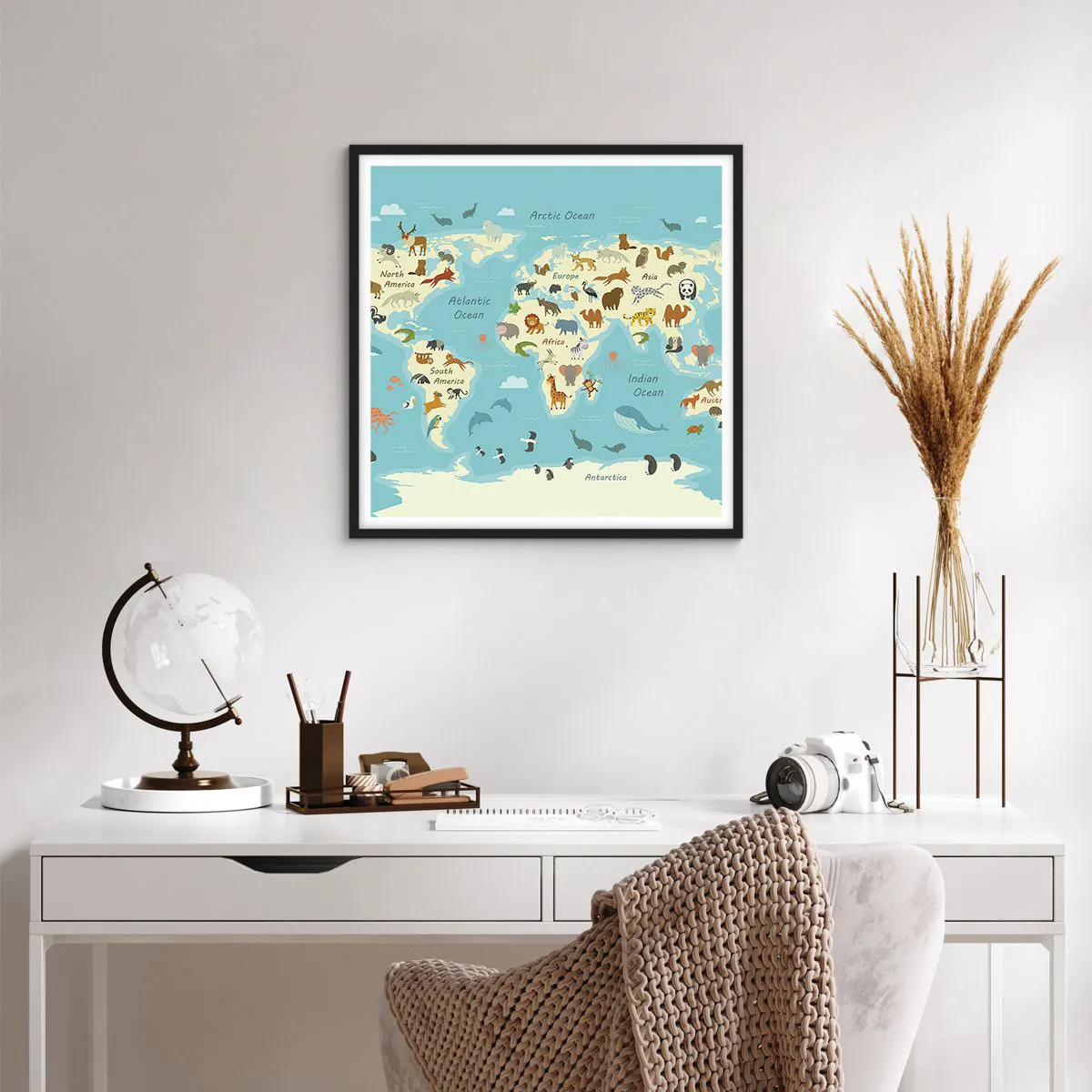 Posterul înrămat este gata să fie atârnat pe perete. Tipărit pe hârtie Premium de înaltă calitate cu o greutate de 200 g/m2. Rama modernă și elegantă este realizată din MDF cu o lățime de 2 cm. Partea din spate a tabloului este protejată de o placă HDF rigidă de 2 mm grosime. Posterul înrămat este ușor și vine prevăzut cu un cârlig pentru o montare comodă. Fiecare ramă este prevăzută cu un panou din plexiglas acrilic transparent, ușor și incasabil.