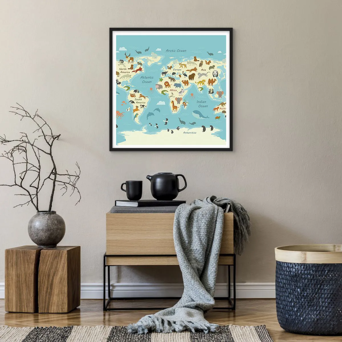 Poster în ramă neagră - Vecini buni - 60x60 cm