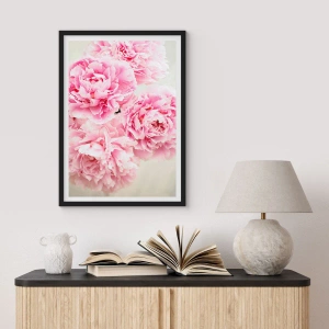 Poster în ramă neagră - Un buchet de bujori roz pe un fundal deschis - 50x70cm - În luxul roz - Decorațiune modernă pentru perete pentru living și dormitor ARTTOR