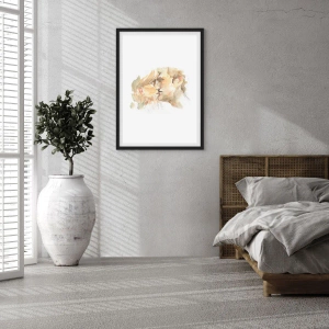 Poster în ramă neagră - Un portret delicat în acuarelă al unui cuplu într-un sărut tandru. - 50x70cm - Jumătatea găsită? - Decorațiune modernă pentru perete pentru living și dormitor ARTTOR