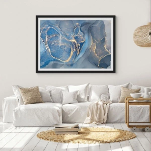 Poster în ramă neagră - Pete abstracte în nuanțe de albastru și auriu - 50x70cm - Praf de aur - Decorațiune modernă pentru perete pentru living și dormitor ARTTOR