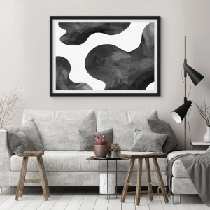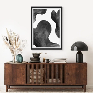 Poster în ramă neagră - Compoziție abstractă în alb-negru cu forme organice - 50x70cm - Calea Lactee - Decorațiune modernă pentru perete pentru living și dormitor ARTTOR