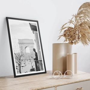 Poster în ramă neagră - Bărbat la balcon cu vedere la Arcul de Triumf - 50x70cm - Cameră cu vedere - Decorațiune modernă pentru perete pentru living și dormitor ARTTOR