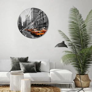 Ceas de perete - Ceas pe sticlă - Soarele marelui oraș - 40x40 cm