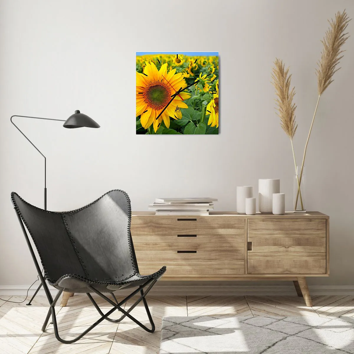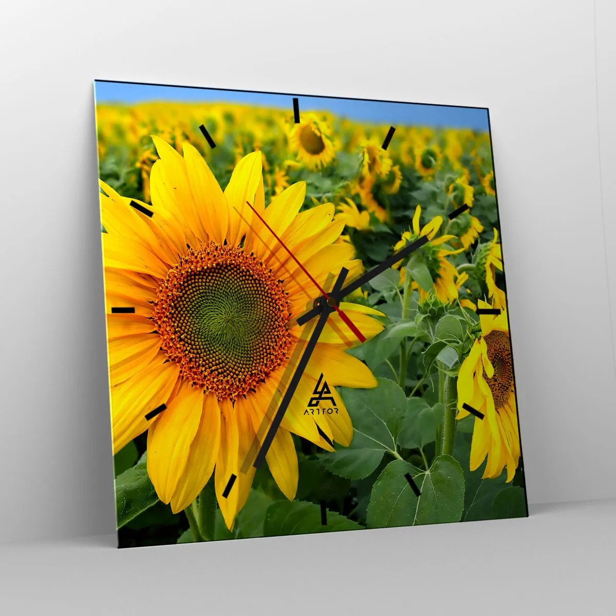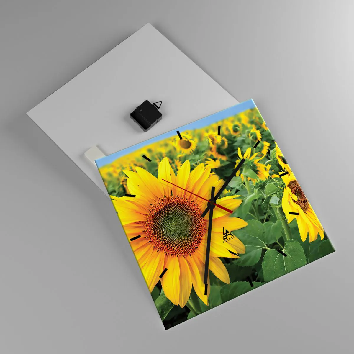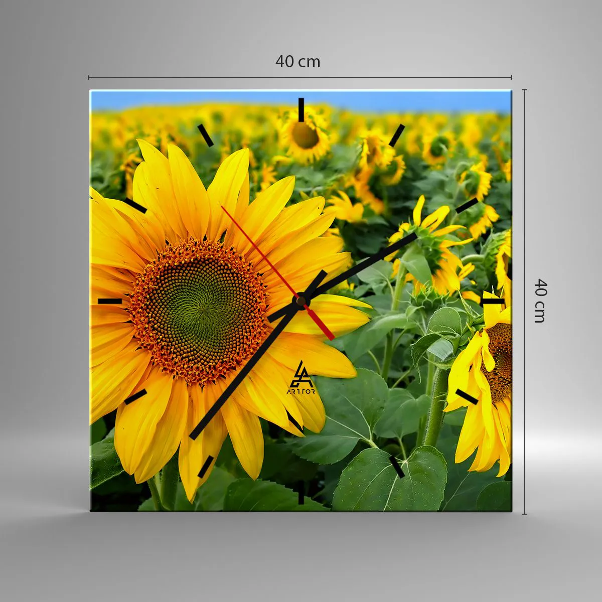 Ceas de perete - Ceas pe sticlă - Sute de sori se aprind în flăcări - 40x40 cm