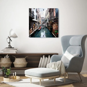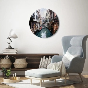 Ceas de perete - Ceas pe sticlă - Peisaj venețian cu gondolă și pod - 40x40 cm