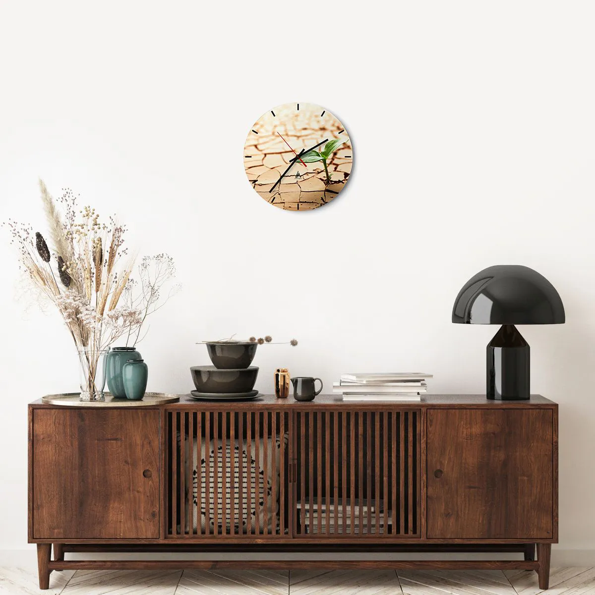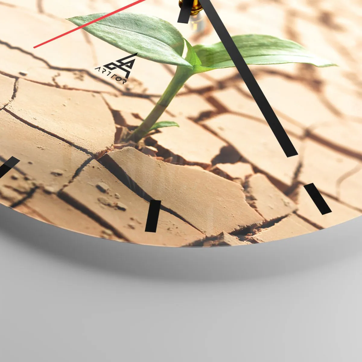 Ceas de perete - Puterea neîmblânzită a vieții - Lăstar verde care crește din pământ uscat