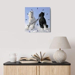 Ceas de perete - Ceas pe sticlă - Galop de alb și negru - 30x30 cm
