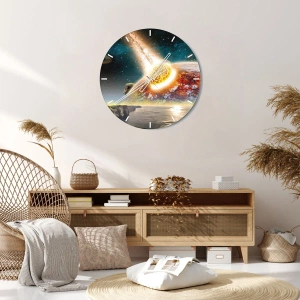 Ceas de perete - Ceas pe sticlă - Coliziunea unui asteroid cu Pământul în fundalul cosmic - 30x30cm - Drama spațială - Decorațiune modernă pentru perete pentru living, bucătărie și dormitor ARTTOR
