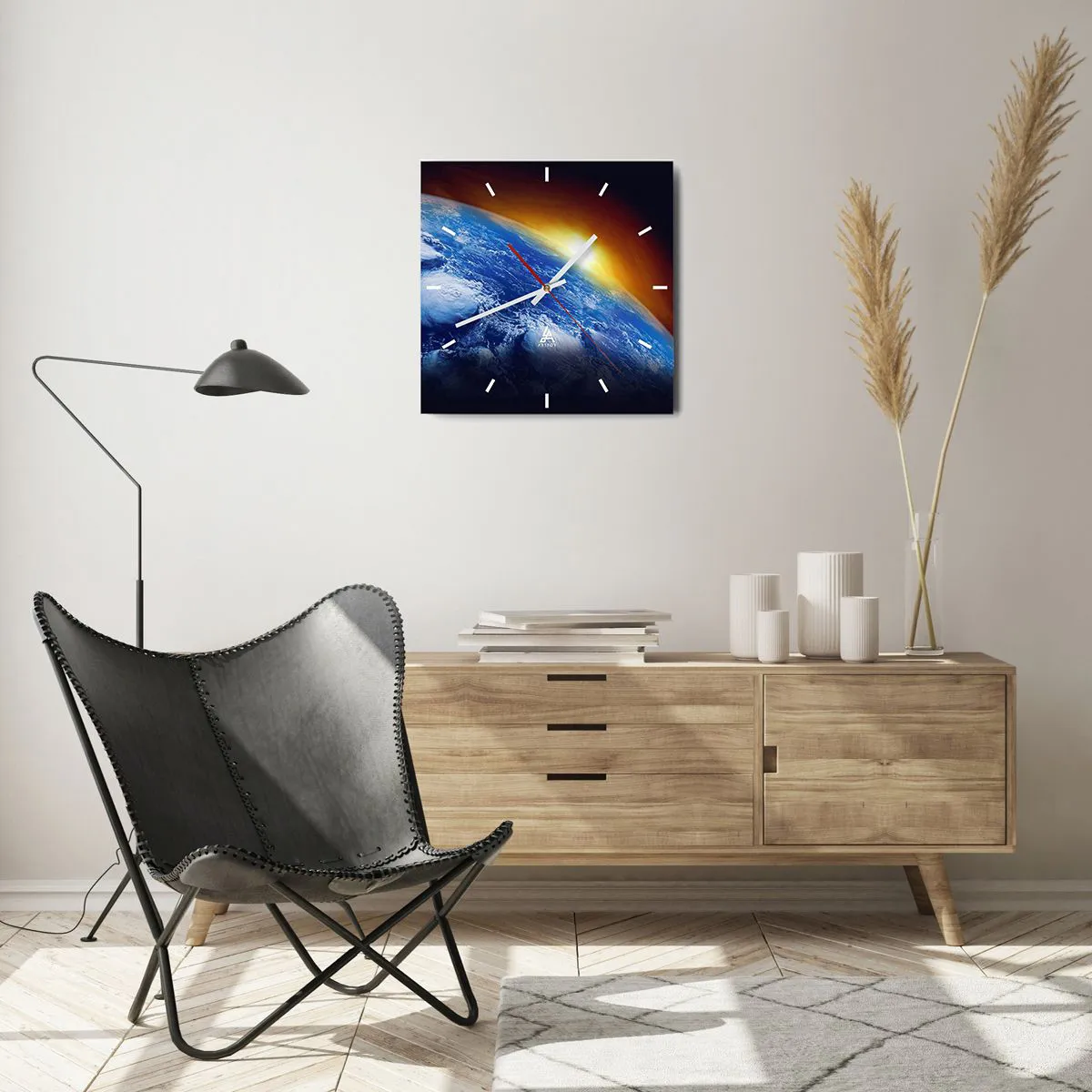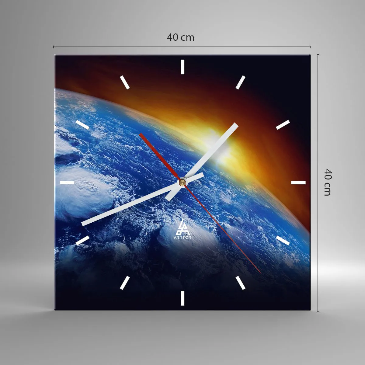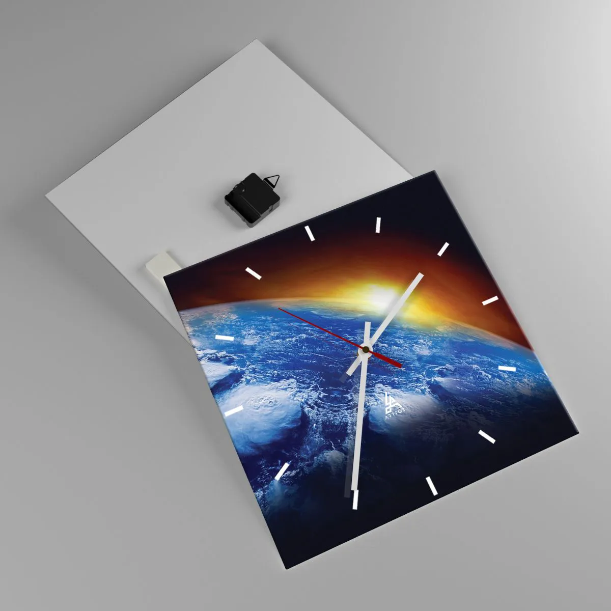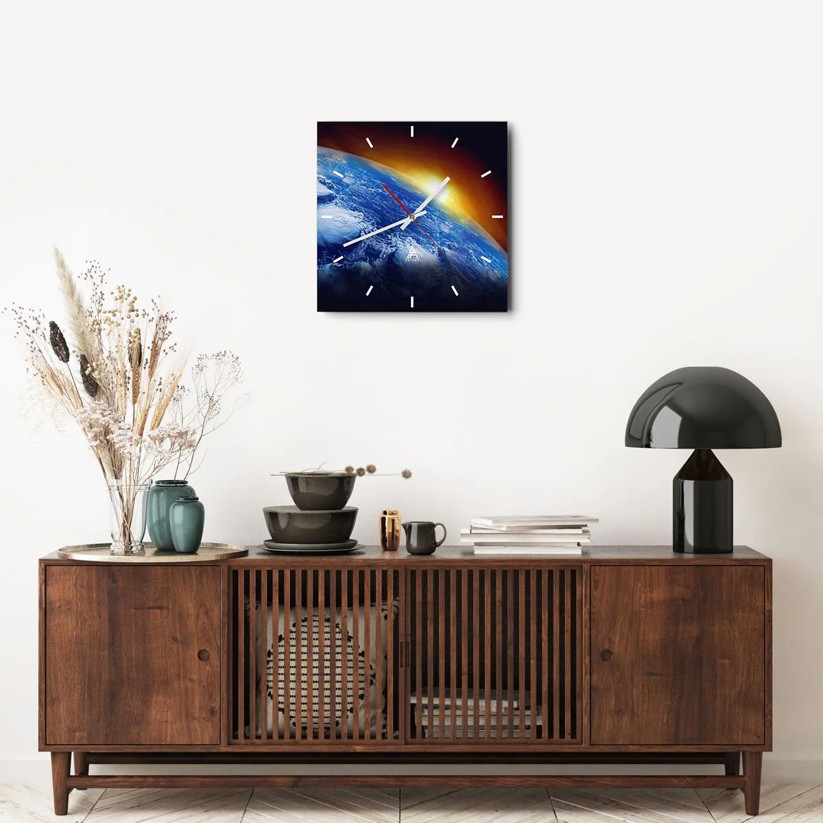 Ceas de perete - Ceas pe sticlă - Răsărit de soare deasupra planetei albastre - 40x40 cm