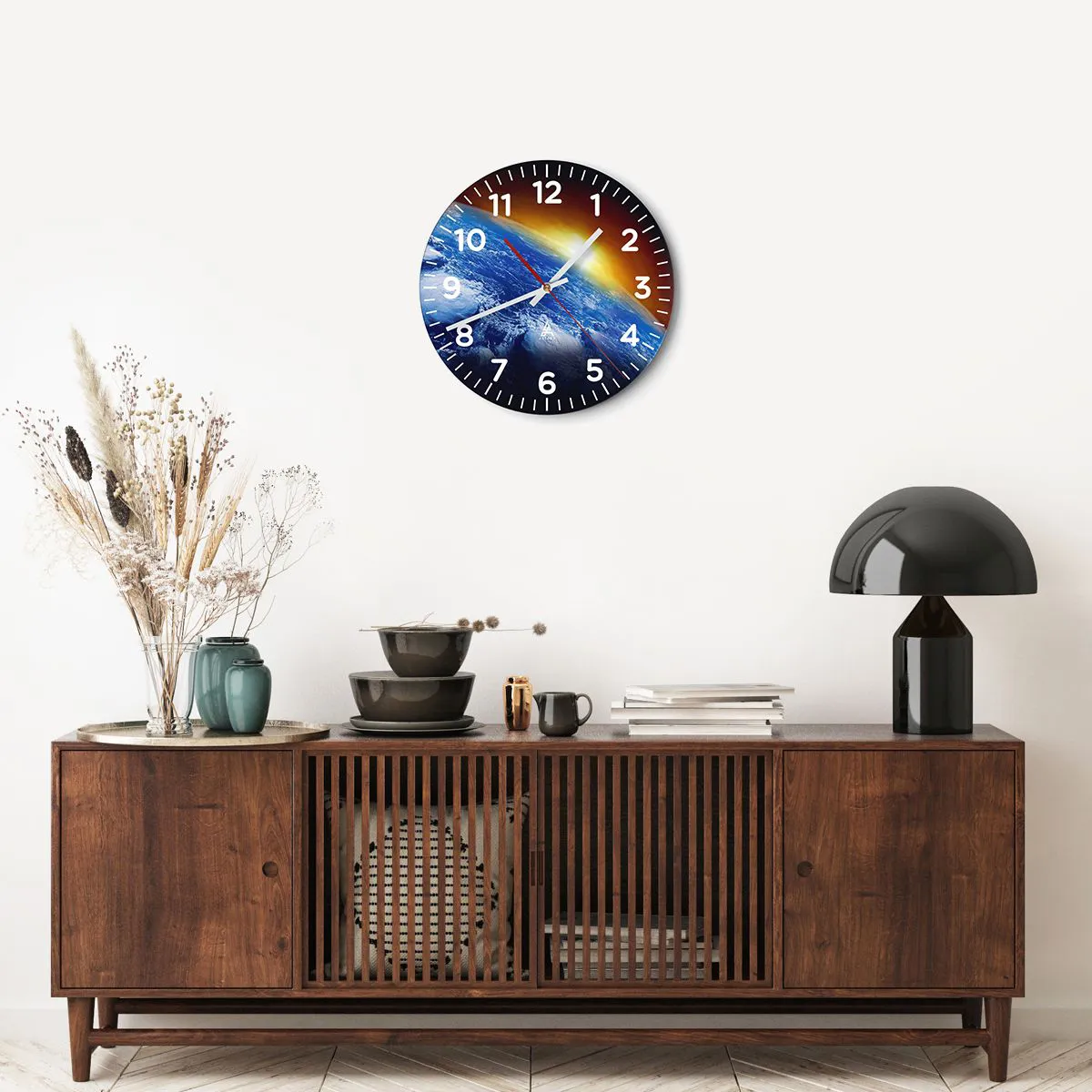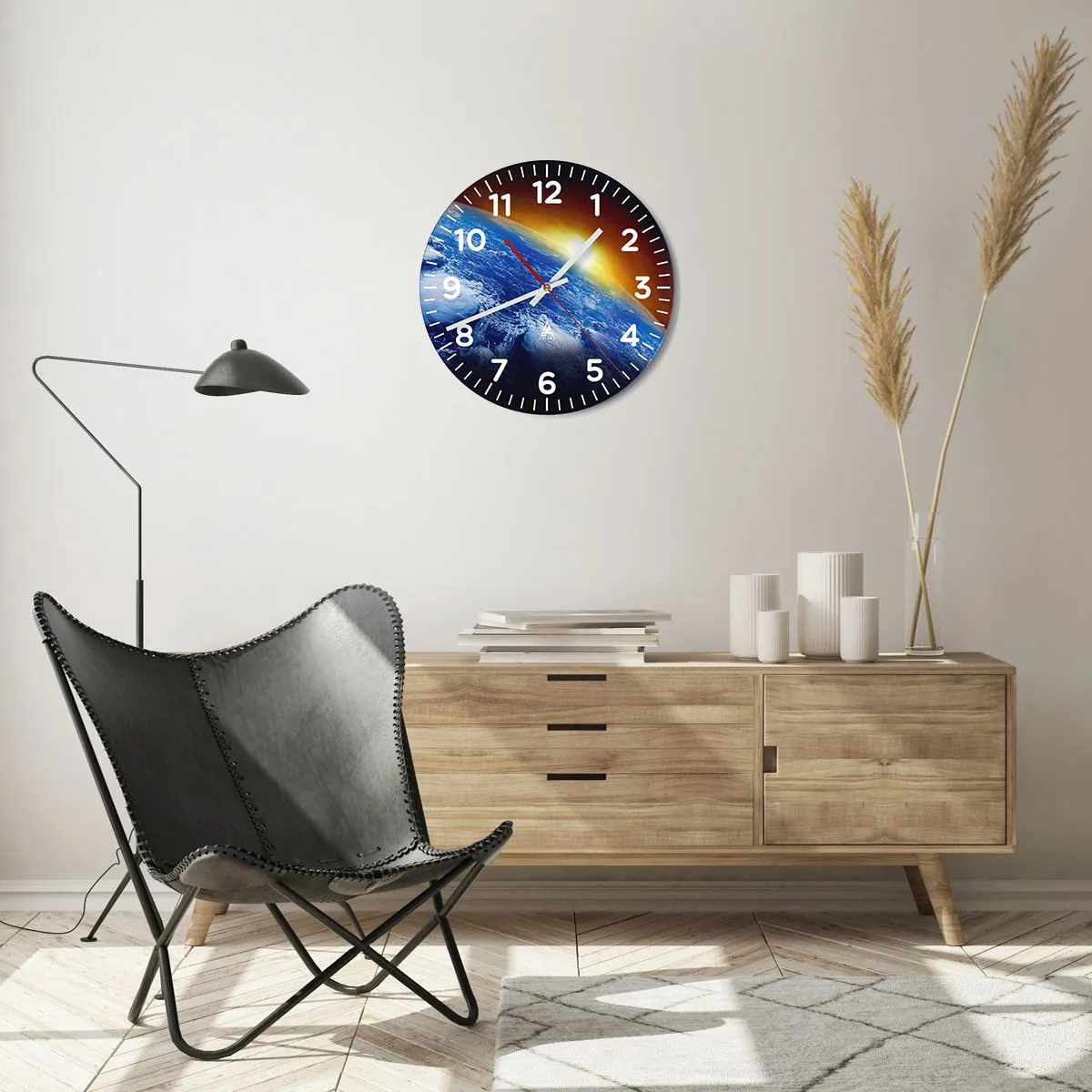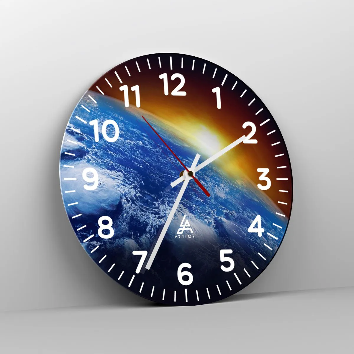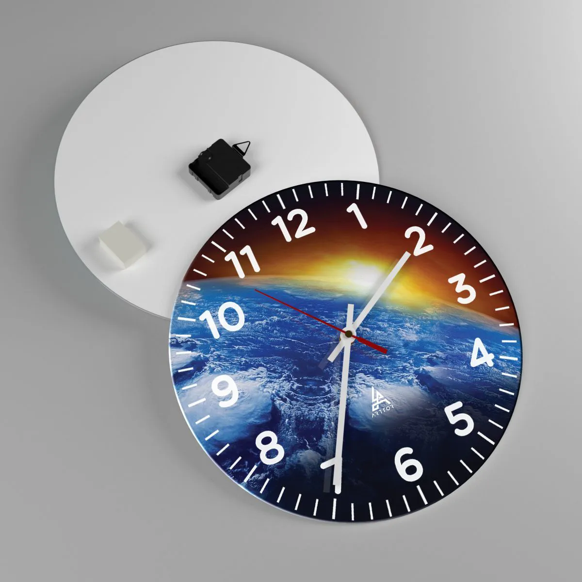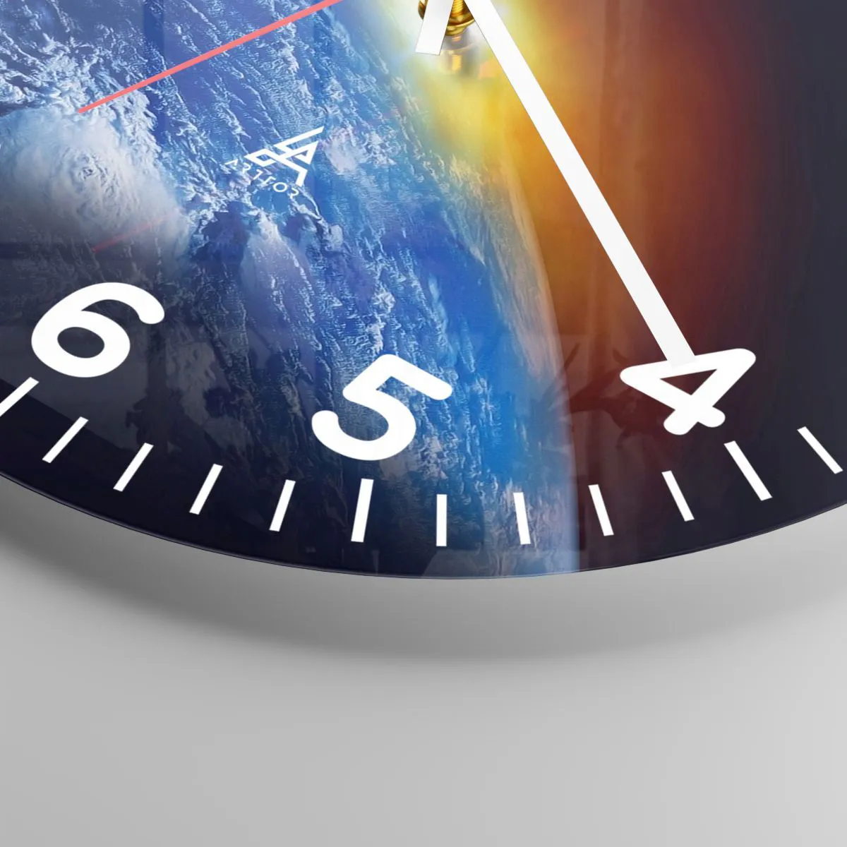 Ceas de perete - Ceas pe sticlă - Răsărit de soare deasupra planetei albastre - 40x40 cm
