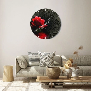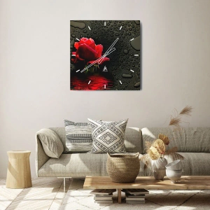 Ceas de perete - Ceas pe sticlă - Roșu și negru - 40x40 cm