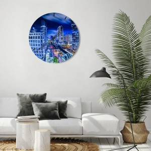 Ceas de perete - Ceas pe sticlă - Ritmurile orașului de noapte - 30x30 cm