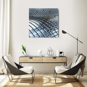 Ceas de perete - Ceas pe sticlă - Val metalic argintiu - 30x30 cm