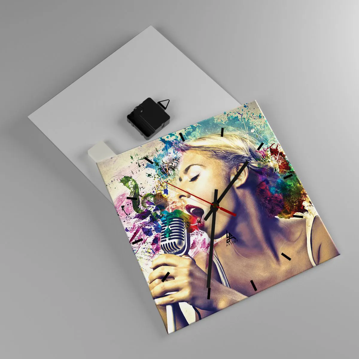 Ceas de perete - Ceas pe sticlă - Pictează lumea cu vocea ta - 30x30 cm