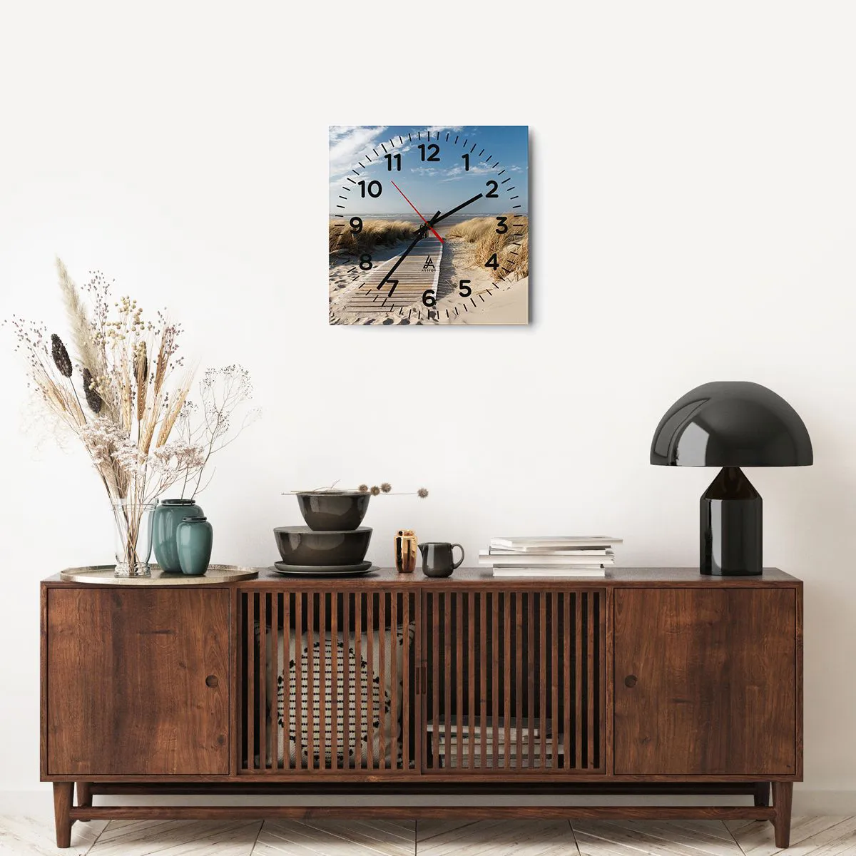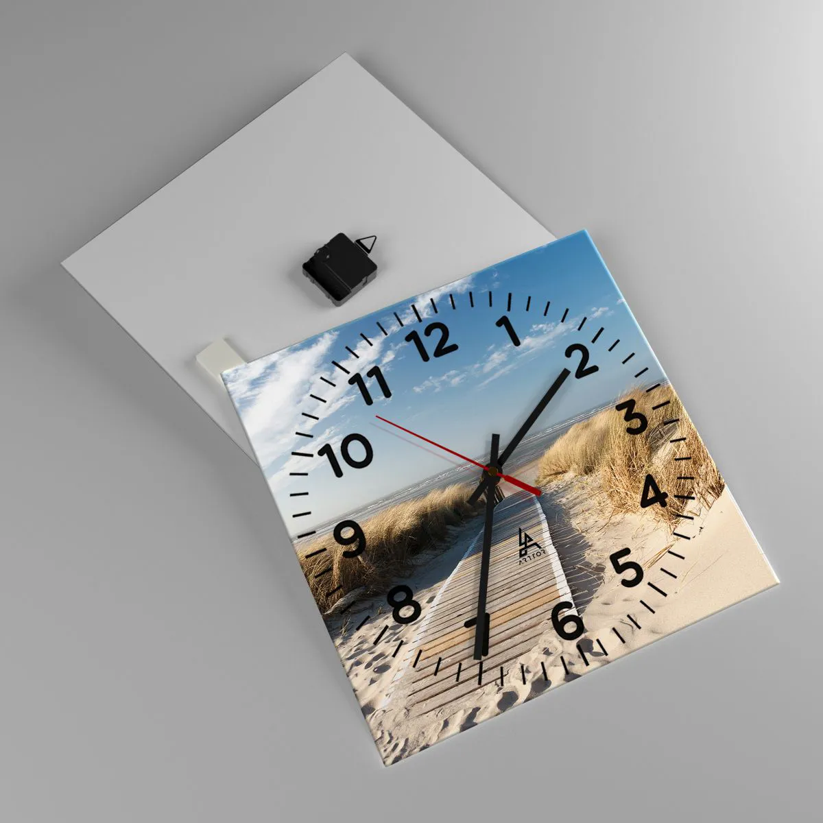 Ceas de perete - Ceas pe sticlă - În spatele dunei, în zumzetul ierbii - 40x40 cm