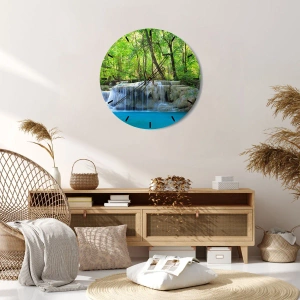 Ceas de perete - Drown in Turquoise and Green - Cascadă înconjurată de o pădure verde și apă turcoaz