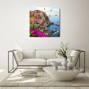 Ceas de perete - Ceas pe sticlă - Un oraș care râde - 40x40 cm
