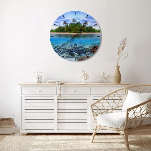 Ceas de perete - Ceas pe sticlă - Insula paradisiacă vă invită - 30x30 cm