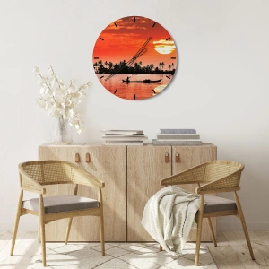 Ceas de perete - Ceas pe sticlă - Liniștea tropicelor la apus de soare - 40x40 cm