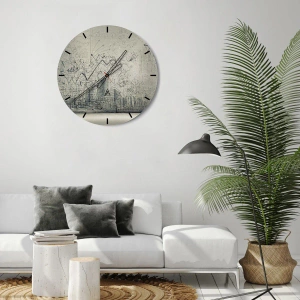 - Un ceas de perete cu motiv de schiță conceptuală și elemente de business, perfect pentru un birou sau studio, punând accent pe stilul modern.
