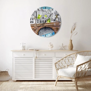 Ceas de perete - Ceas pe sticlă - Orașul frumos ca o pictură - 30x30 cm