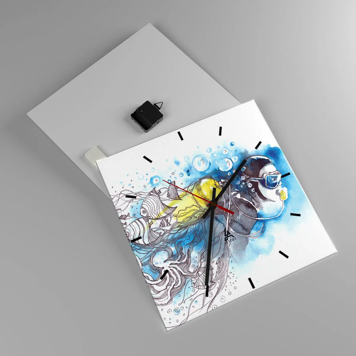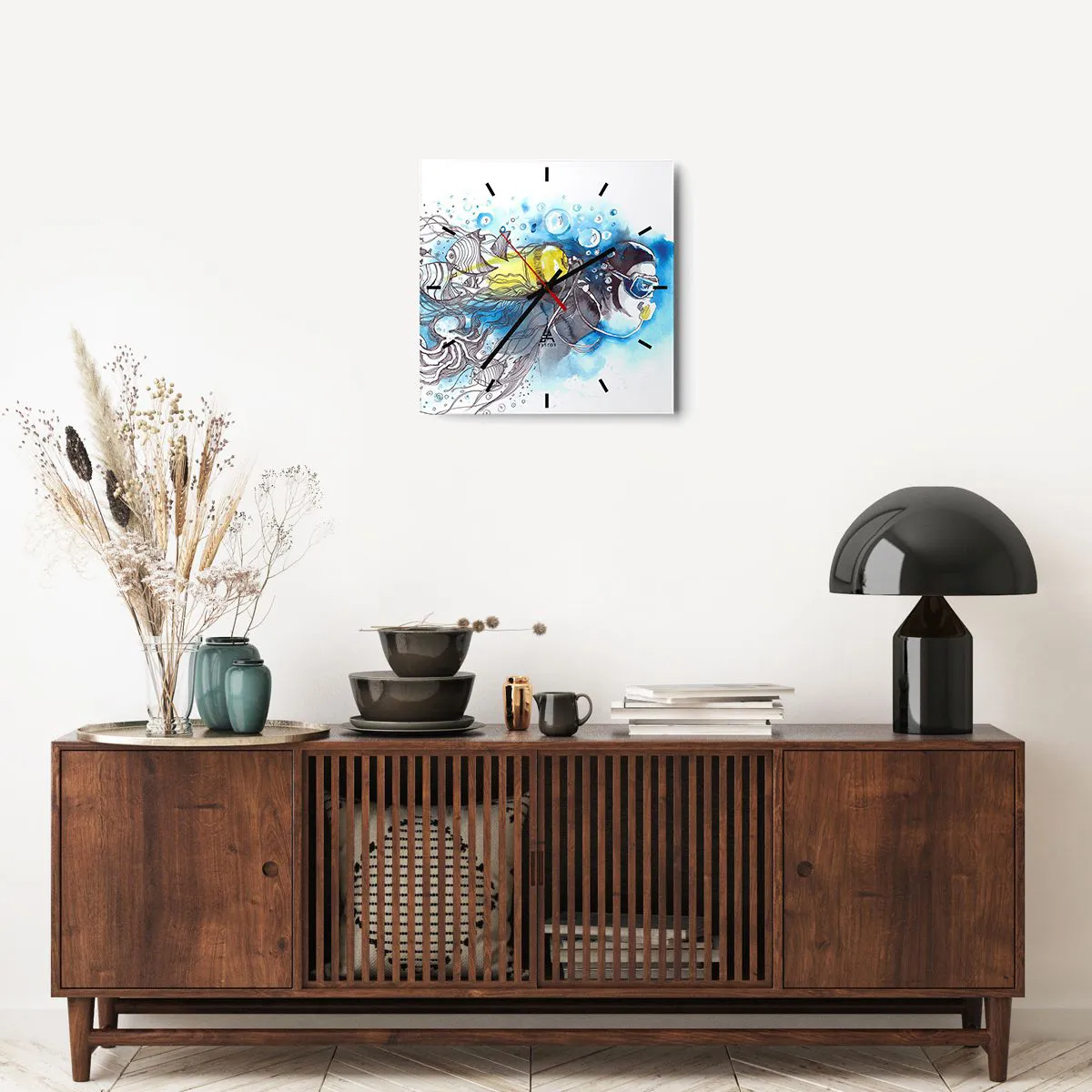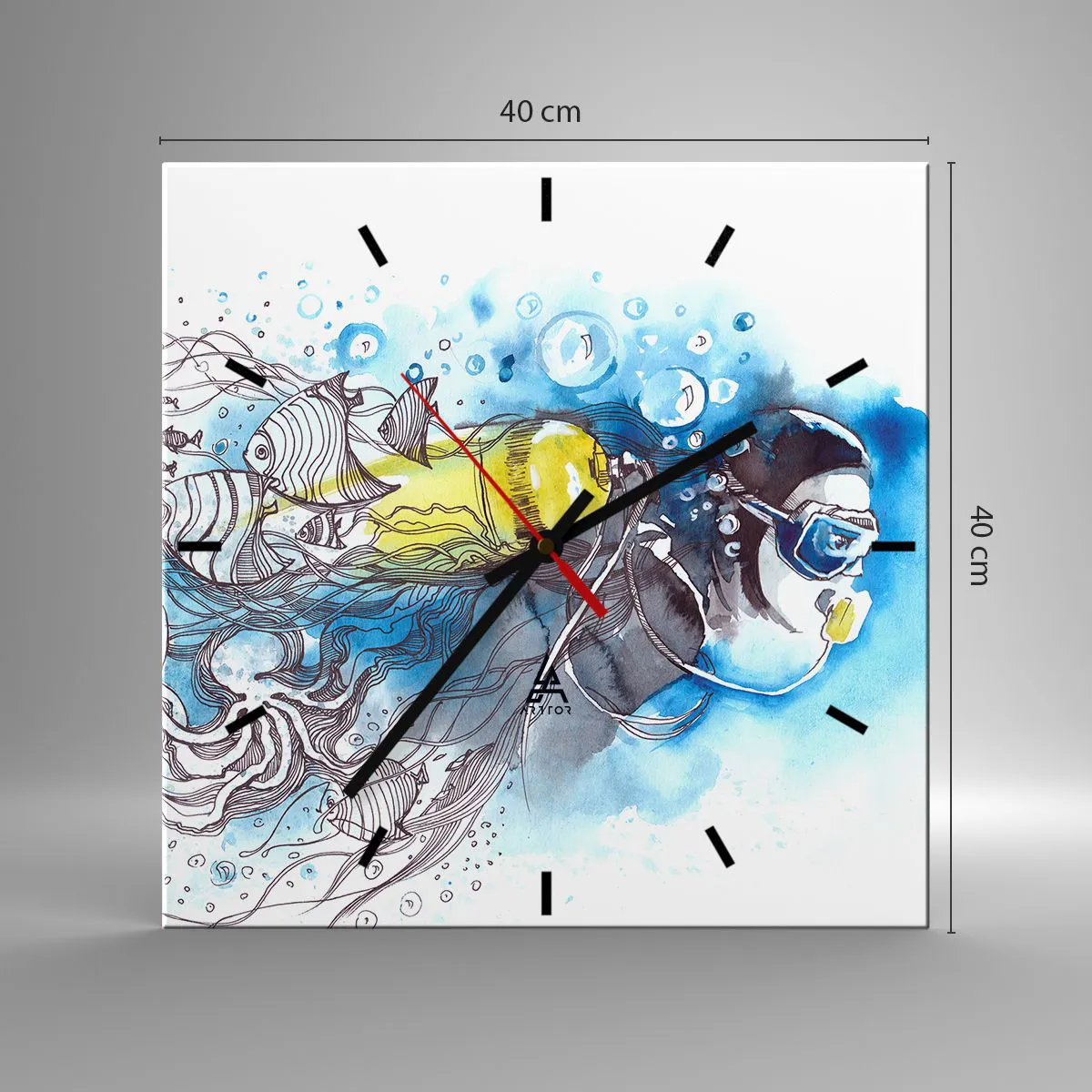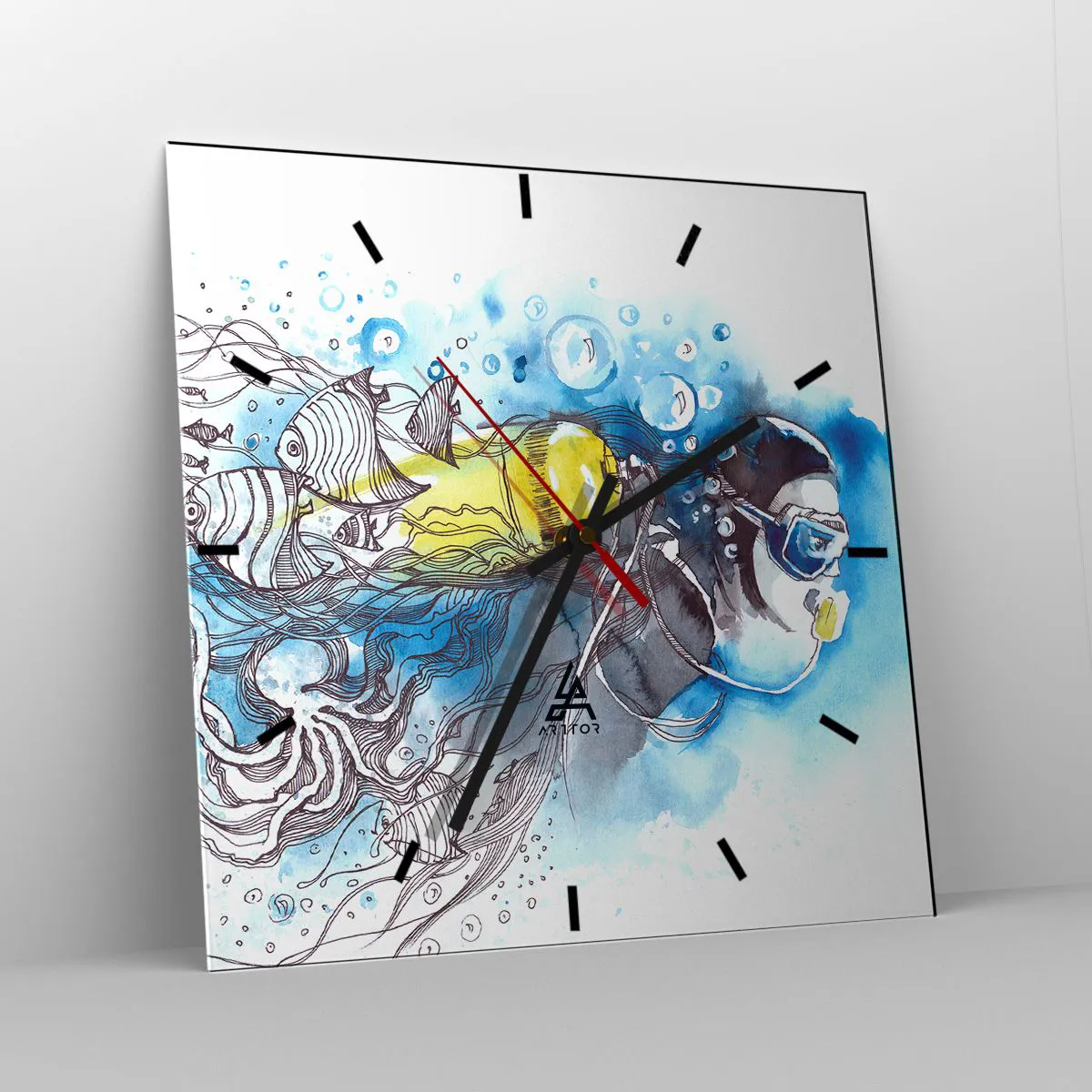 Ceas de perete - Ceas pe sticlă - Marele albastru - 40x40 cm