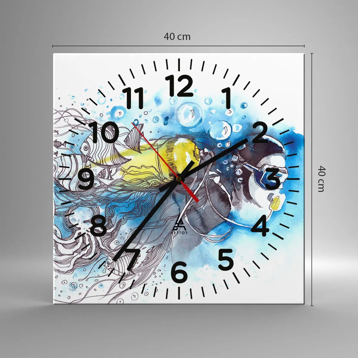Ceas de perete - Ceas pe sticlă - Marele albastru - 40x40 cm