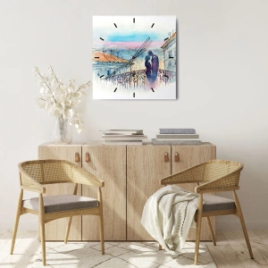 Ceas de perete - Ceas pe sticlă - Iubiți parizieni - 40x40 cm