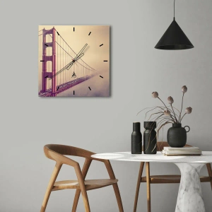 - Acest ceas de perete prezintă un motiv artistic al Podului Golden Gate într-o ceață delicată. Un plus elegant și modern pentru interioarele de inspirație urbană.