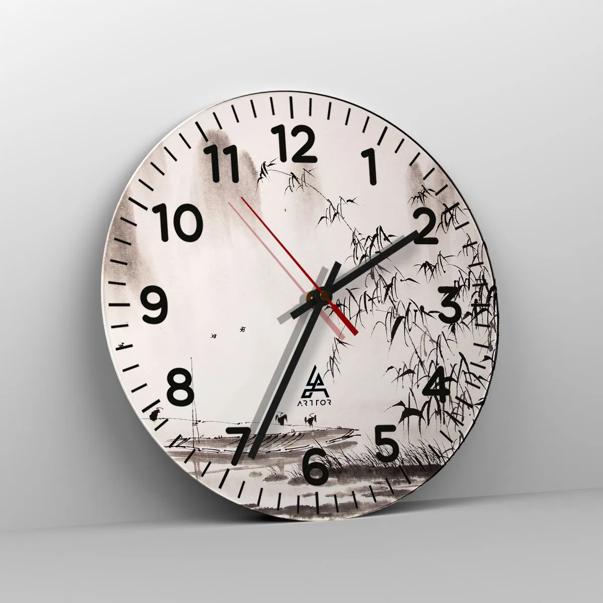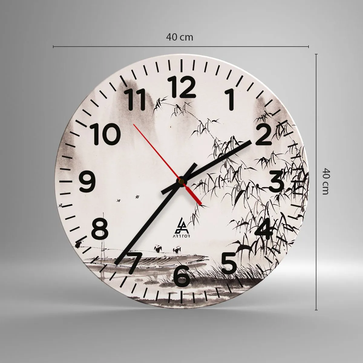 Ceas de perete - Ceas pe sticlă - Liniștea câmpurilor de orez - 40x40 cm