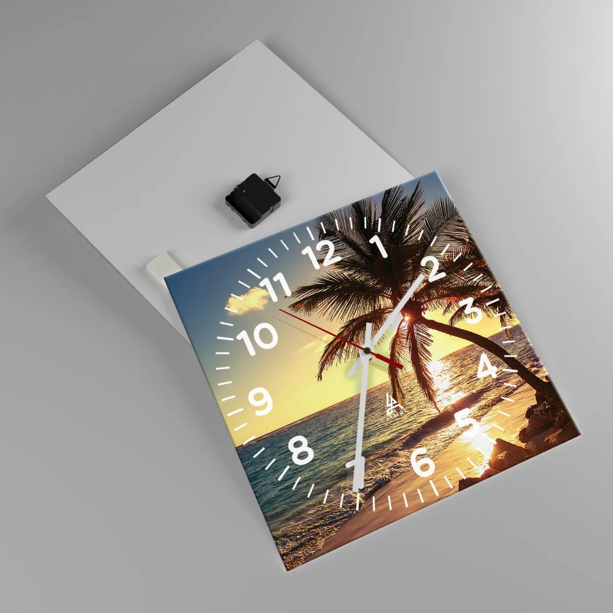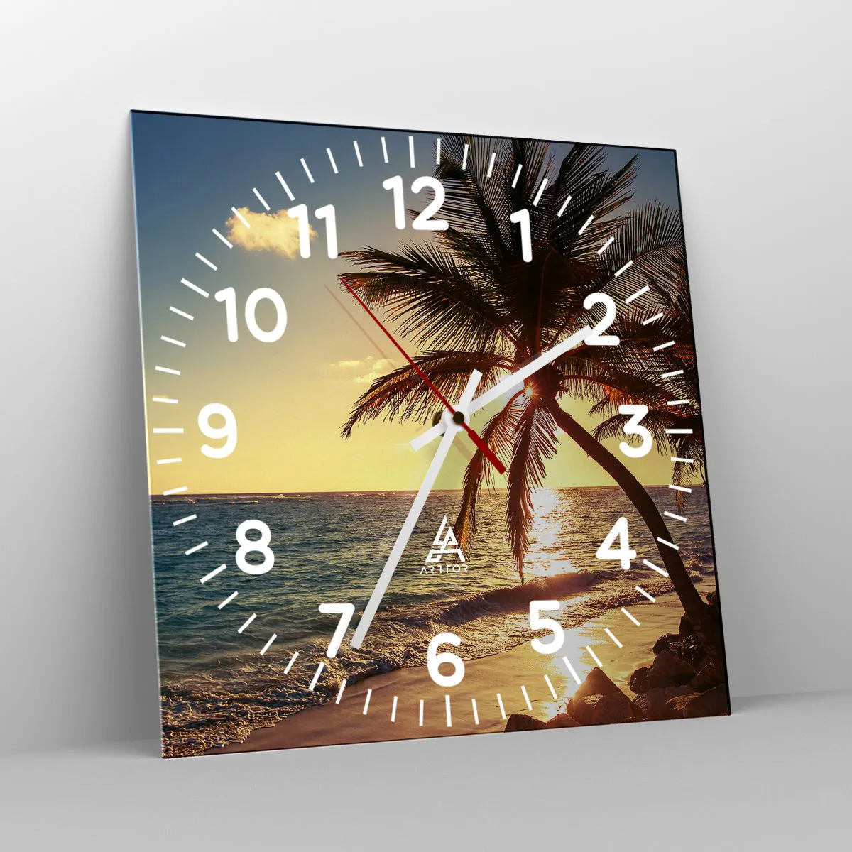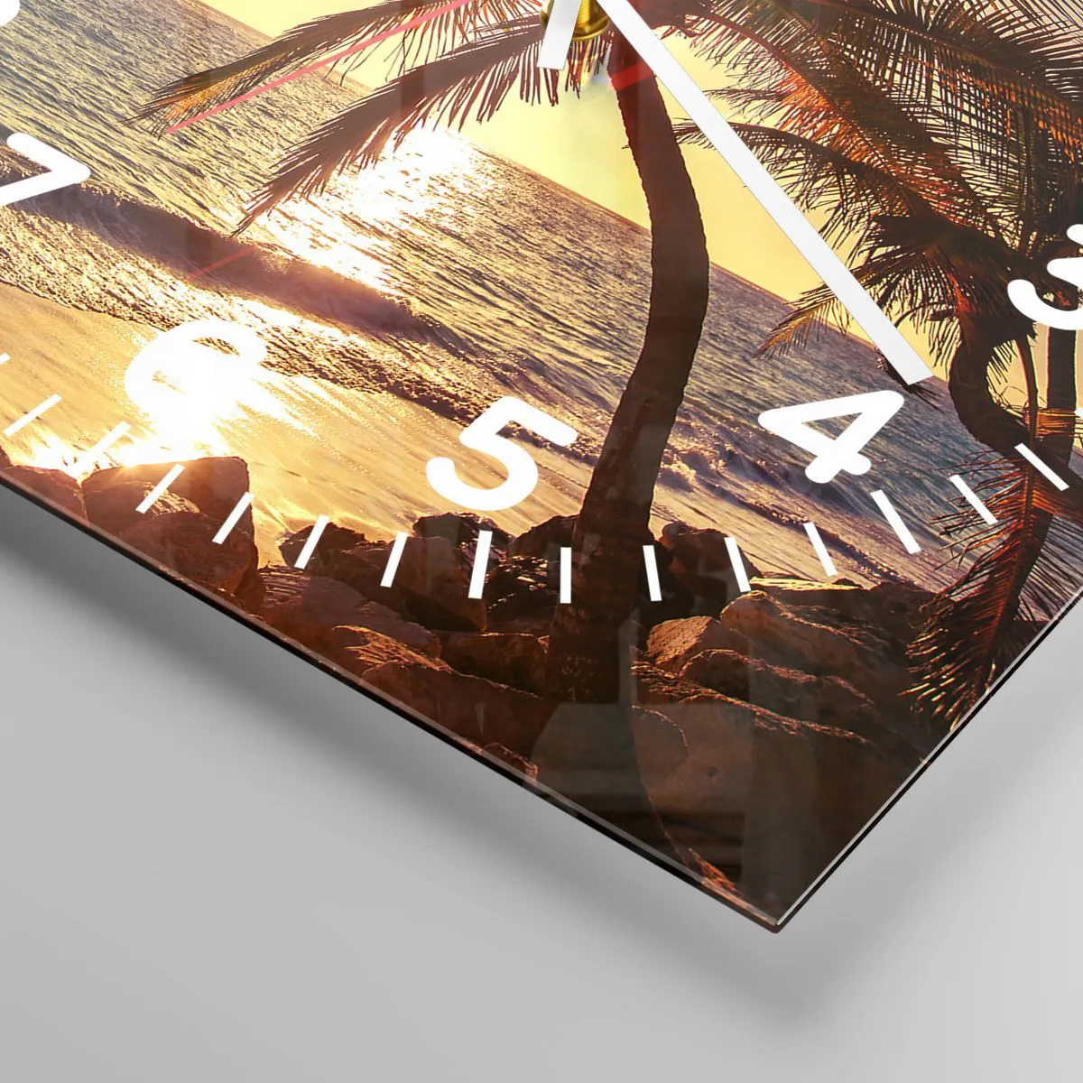 Ceas de perete - Ceas pe sticlă - Vara sub palmieri - 40x40 cm