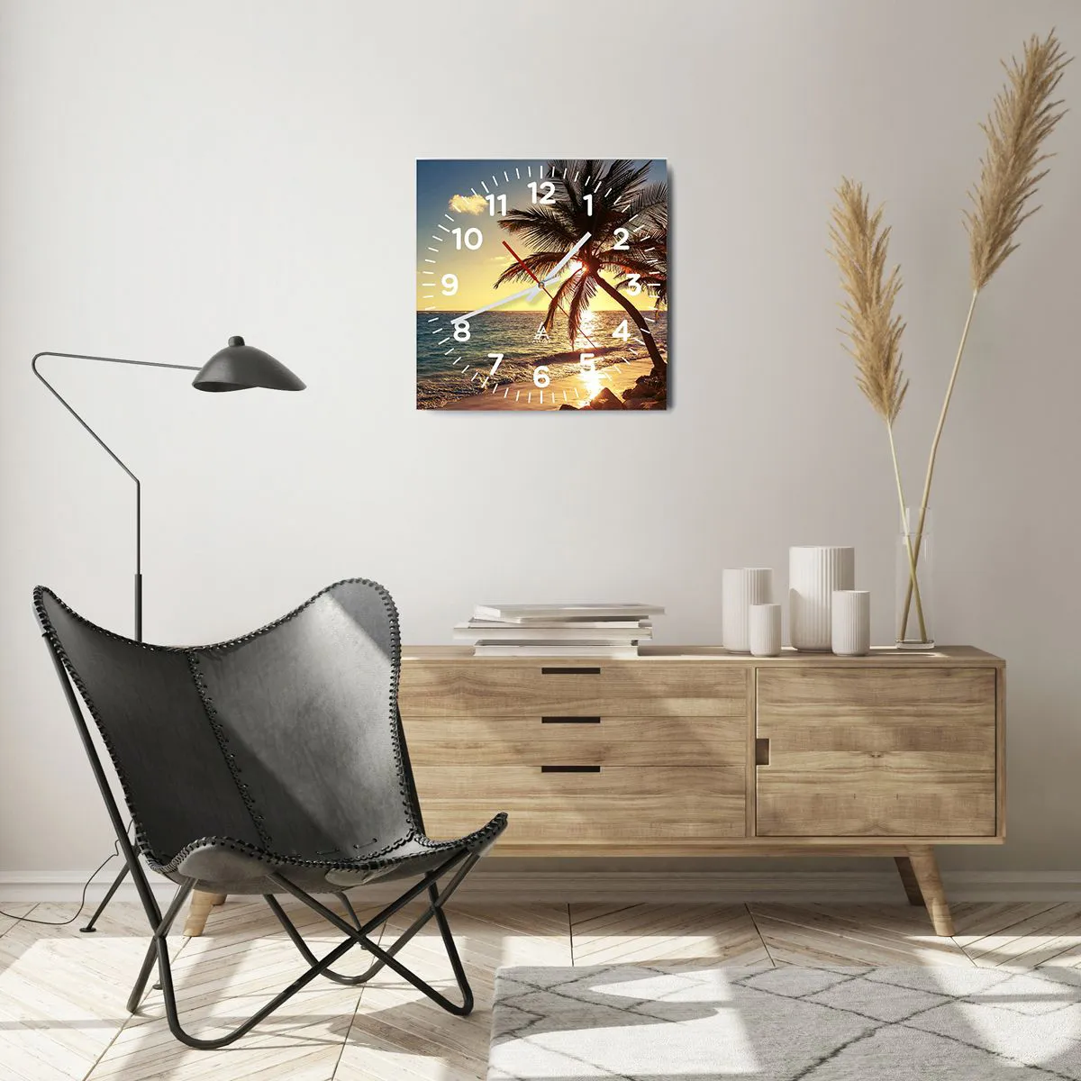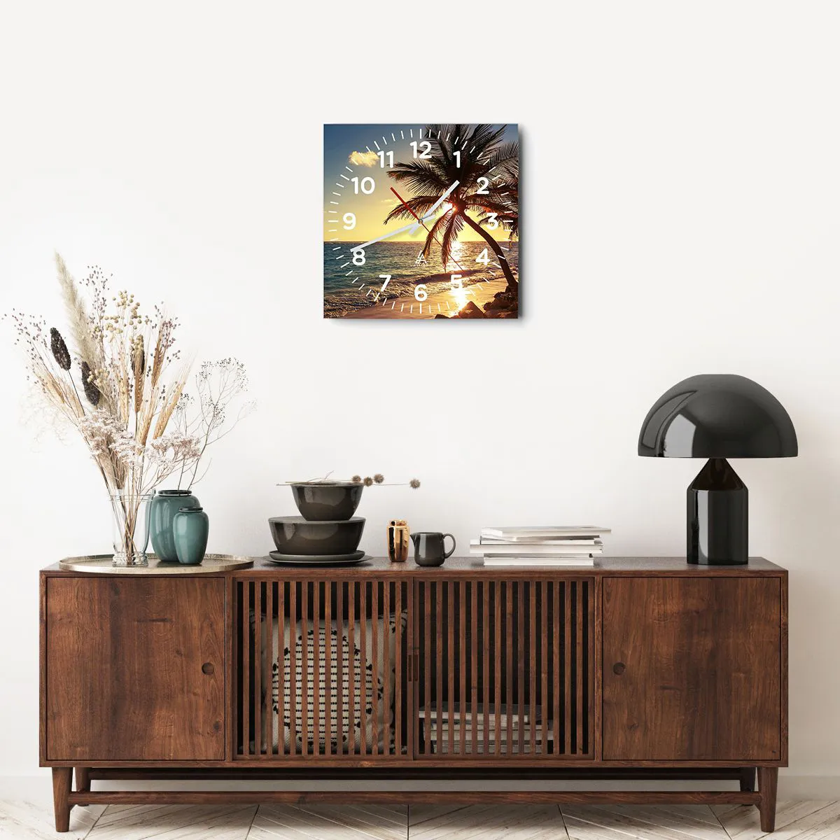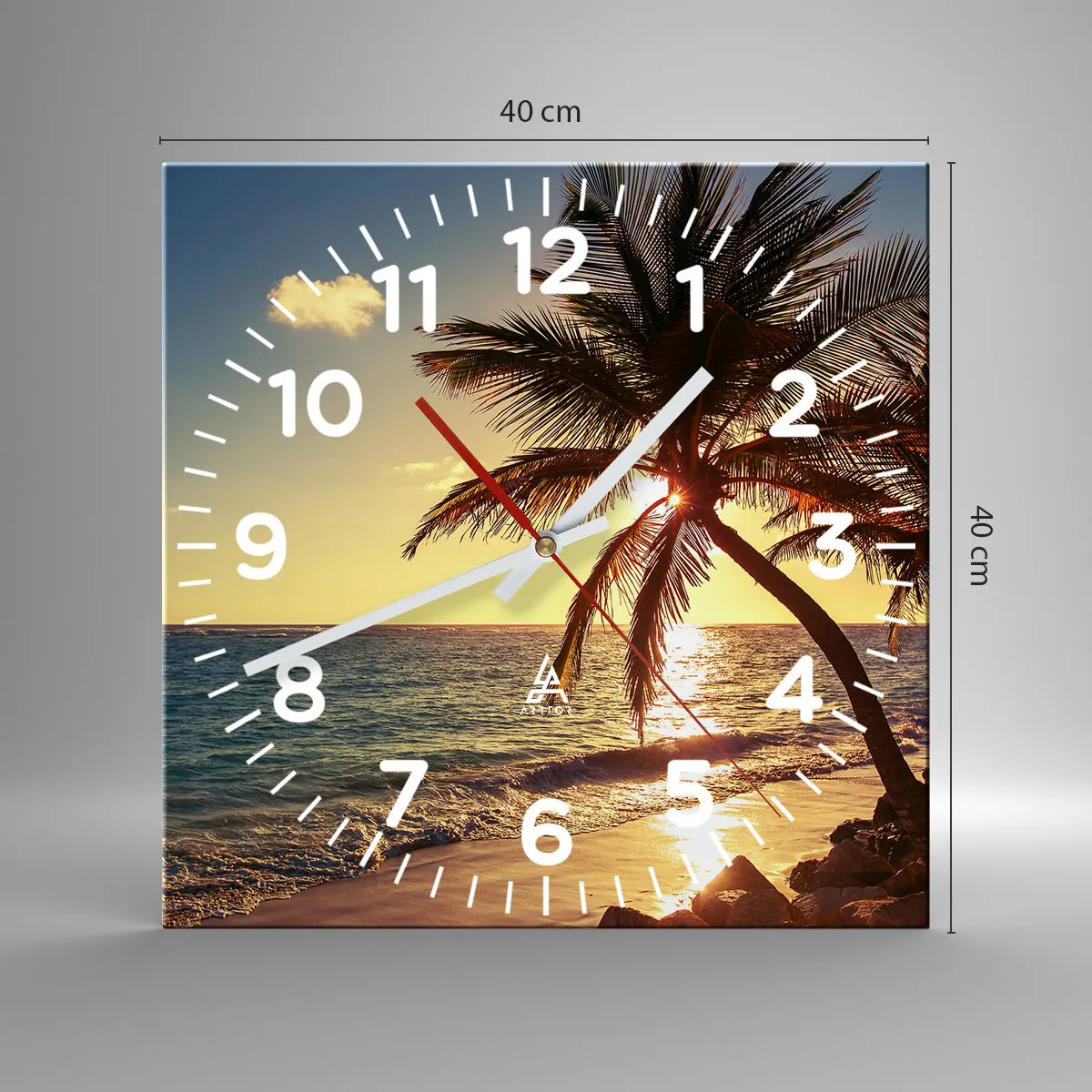Ceas de perete - Ceas pe sticlă - Vara sub palmieri - 40x40 cm