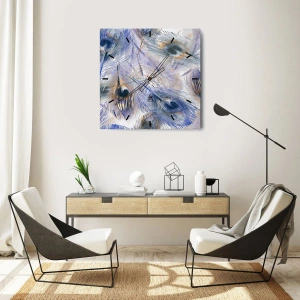 Ceas de perete - Ceas pe sticlă - Compoziția penelor de păun - 30x30 cm