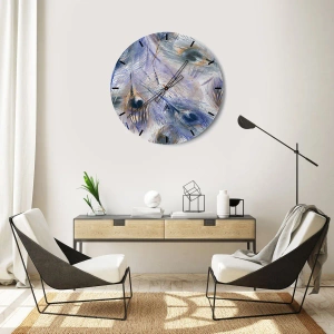 Ceas de perete - Ceas pe sticlă - Compoziția penelor de păun - 30x30 cm