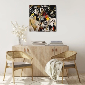 • Cuplu îndrăgostit, cubism, sărut, Oameni, art, Pentru birou, Pentru birou, Pentru sufragerie, Pentru hol, Pentru living, Pentru dormitor, Negru, portocaliu, gri, galben, Rundă